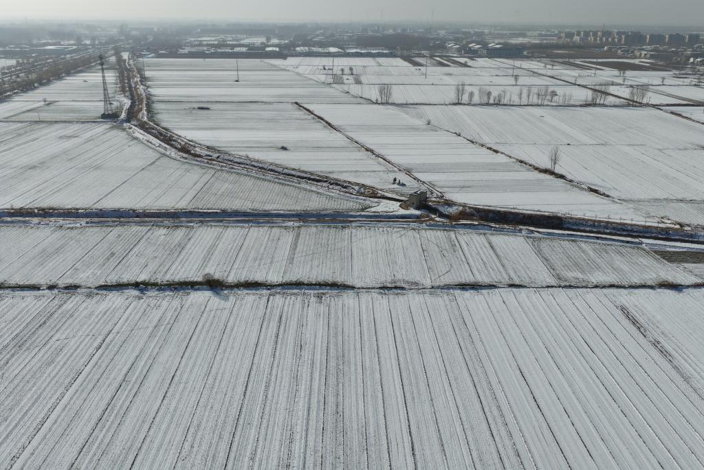 12月14日,河南省兰考县三义寨乡的麦田已被积雪覆盖。新华社发 李春亮 摄